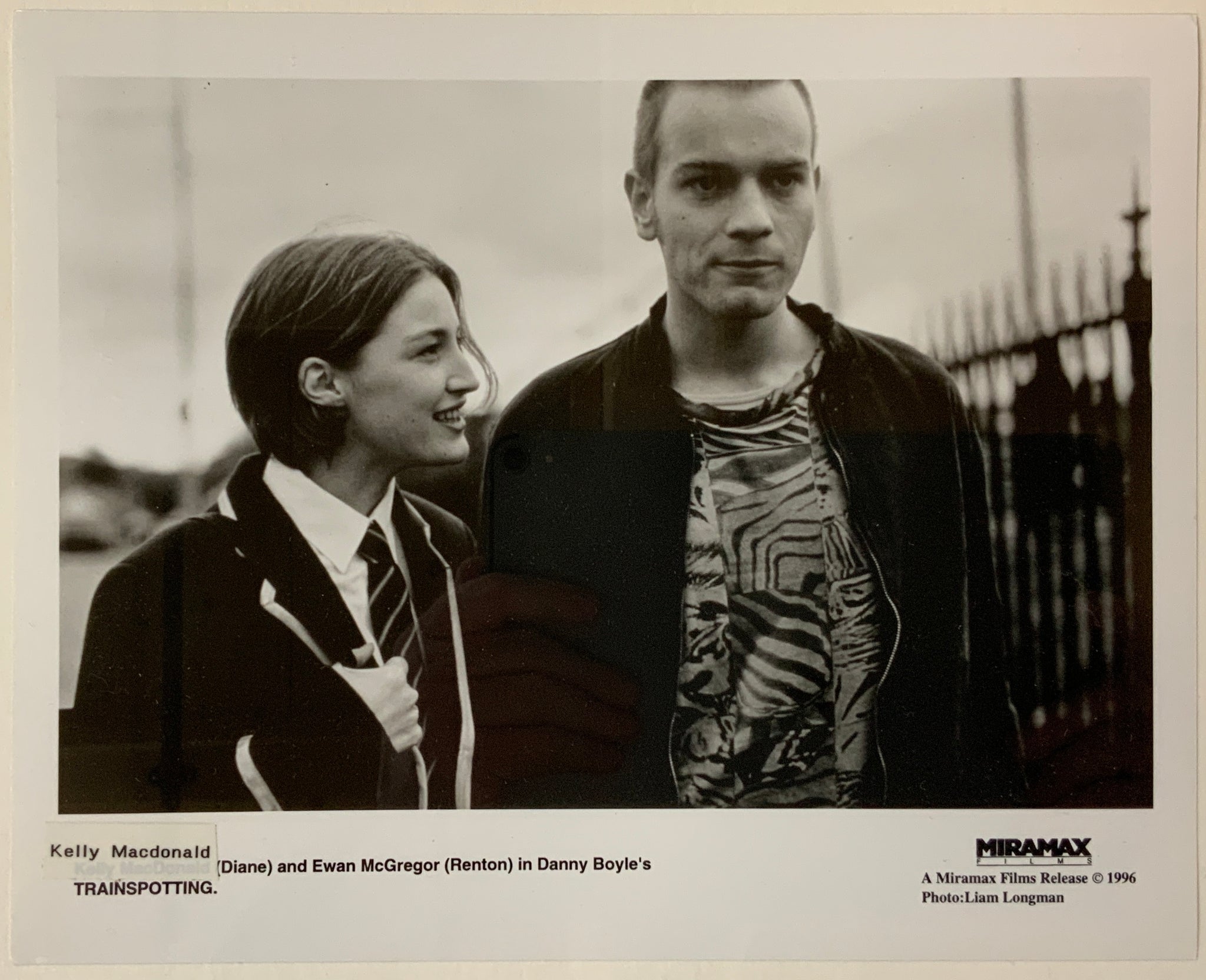 This superb movie still shows (ahem) school-girl Diane and McGregor's Renton. Interestingly, Kelly Macdonald's name has been updated with a snipe. Someone didn't check their Scottish surnames before printing! It would have been shot by a Unit Still Photographer during filming and then used for publicity during the film's release.