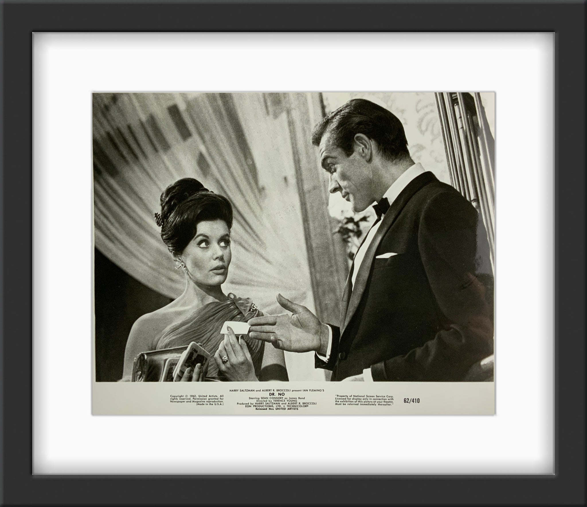 A guaranteed original and framed '8x10' movie still from Terence Young's 1962 espionage thriller "Dr No", the first of the James Bond movies.