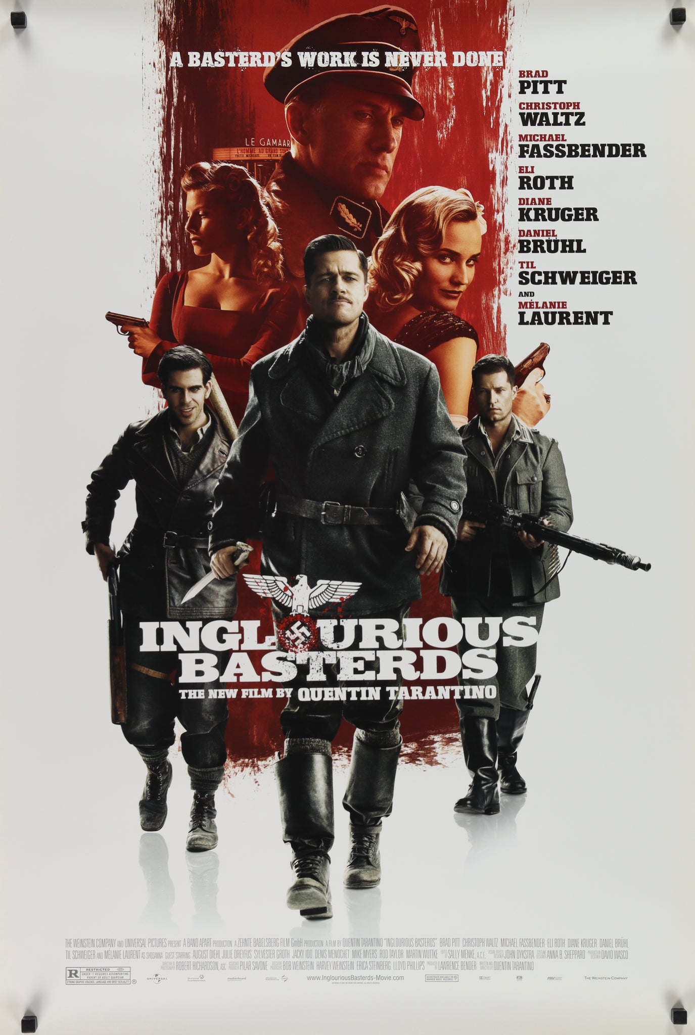 A guaranteed original one sheet movie poster from 2009 for Quentin Tarantino's World War II black comedy "Inglourious Basterds".
