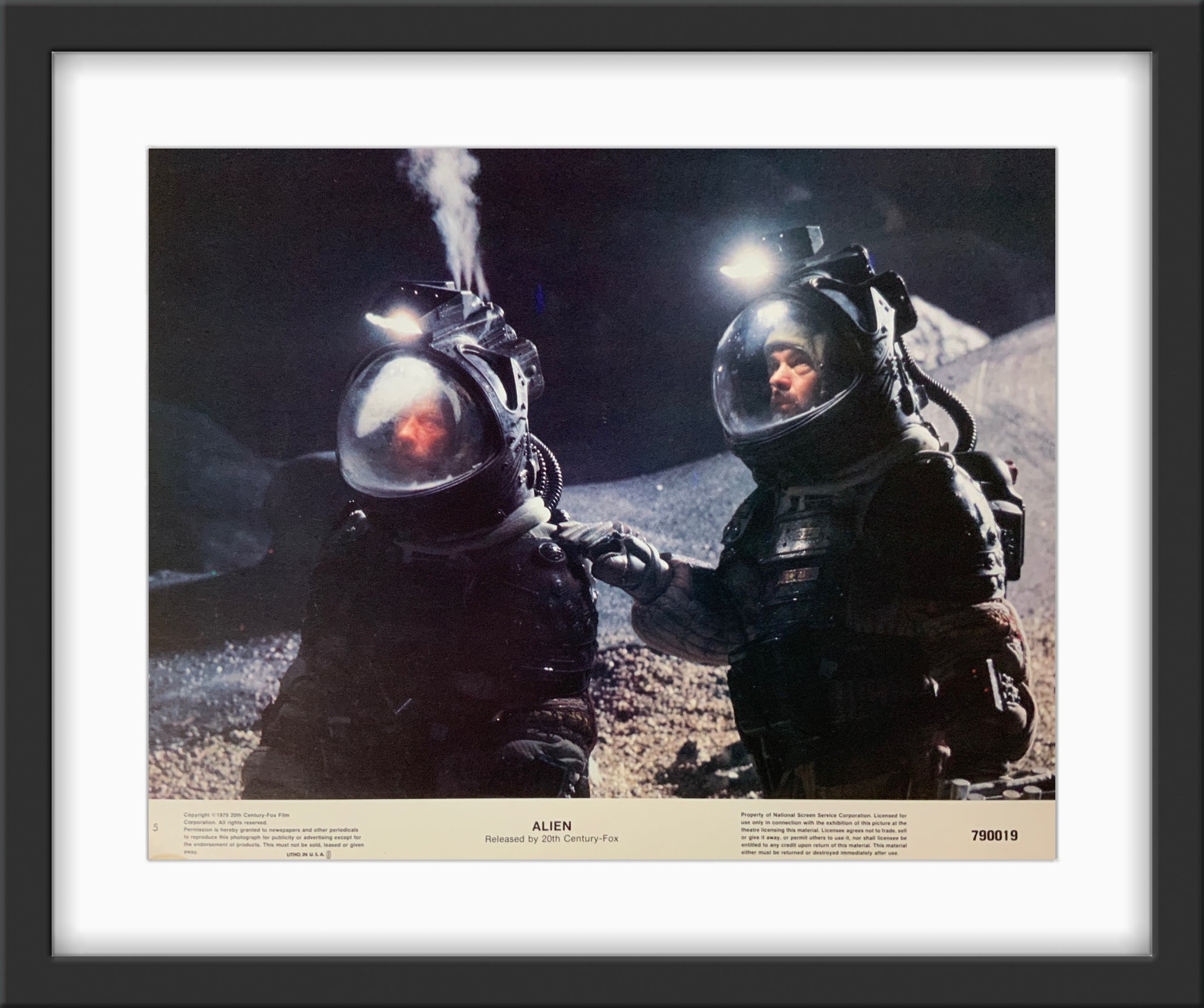 This superb and really atmospheric lobby card shows the crew of the Nostromo approaching the mysterious alien ship. It would have been used in the foyer of a U.S. movie theatre at the time of the film's release.