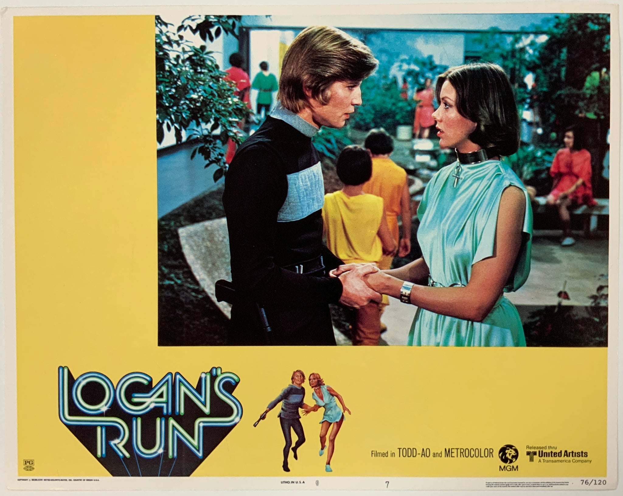A guaranteed original 11x14 lobby card from 1975 for Michael Anderson's dystopian science-fiction fantasy "Logan's Run", based on the 1967 novel by William F. Nolan and George Clayton Johnson.