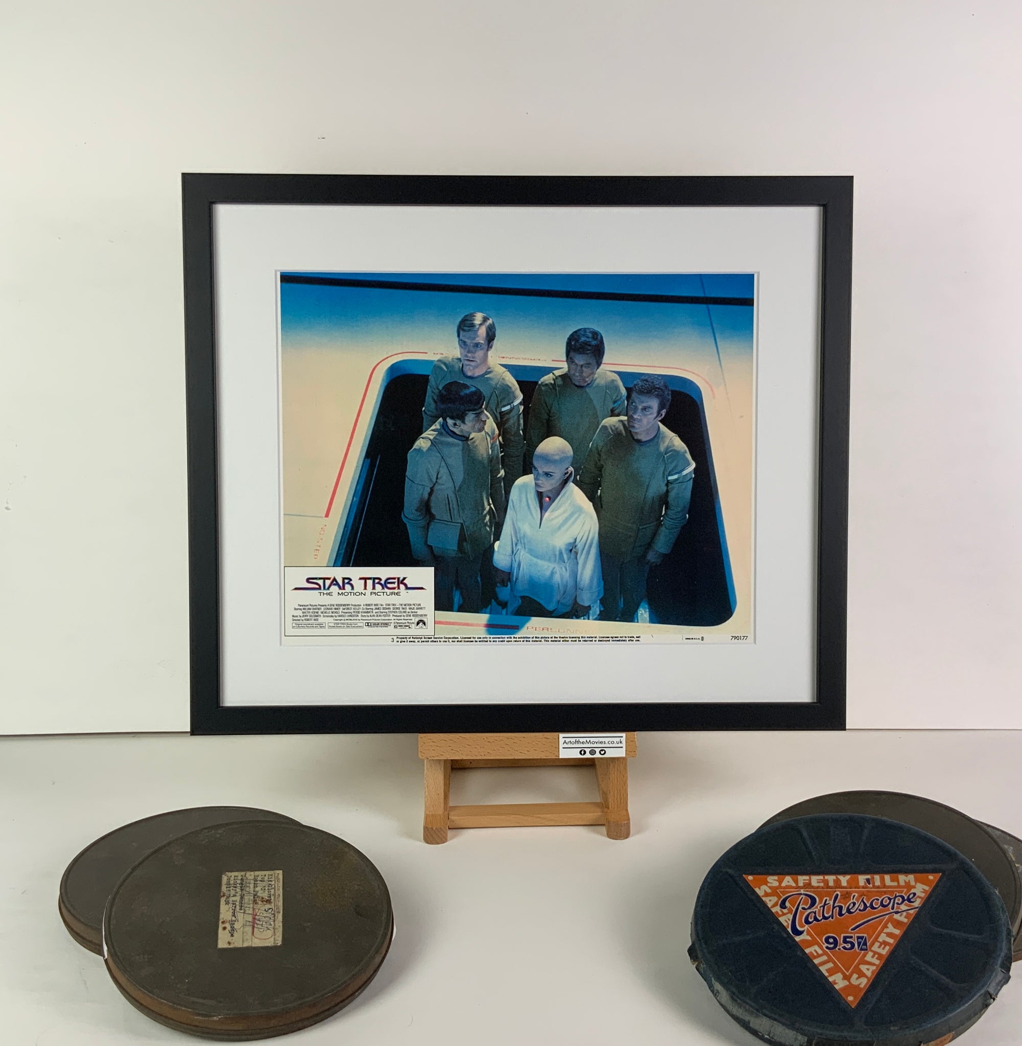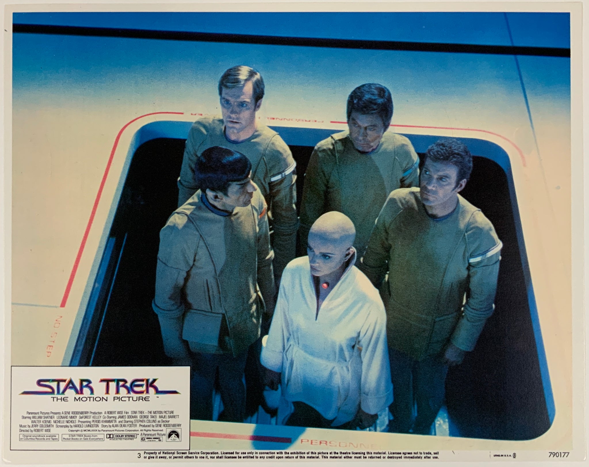 This wonderful lobby card shows Kirk, Bones, Spock and Decker with the humanoid Ilia V'ger probe! It would have been displayed in the foyer of a U.S. movie theater at the time of the film's release.