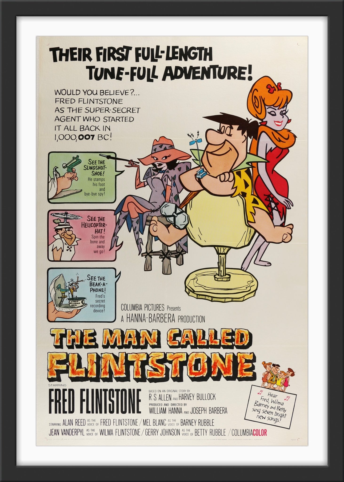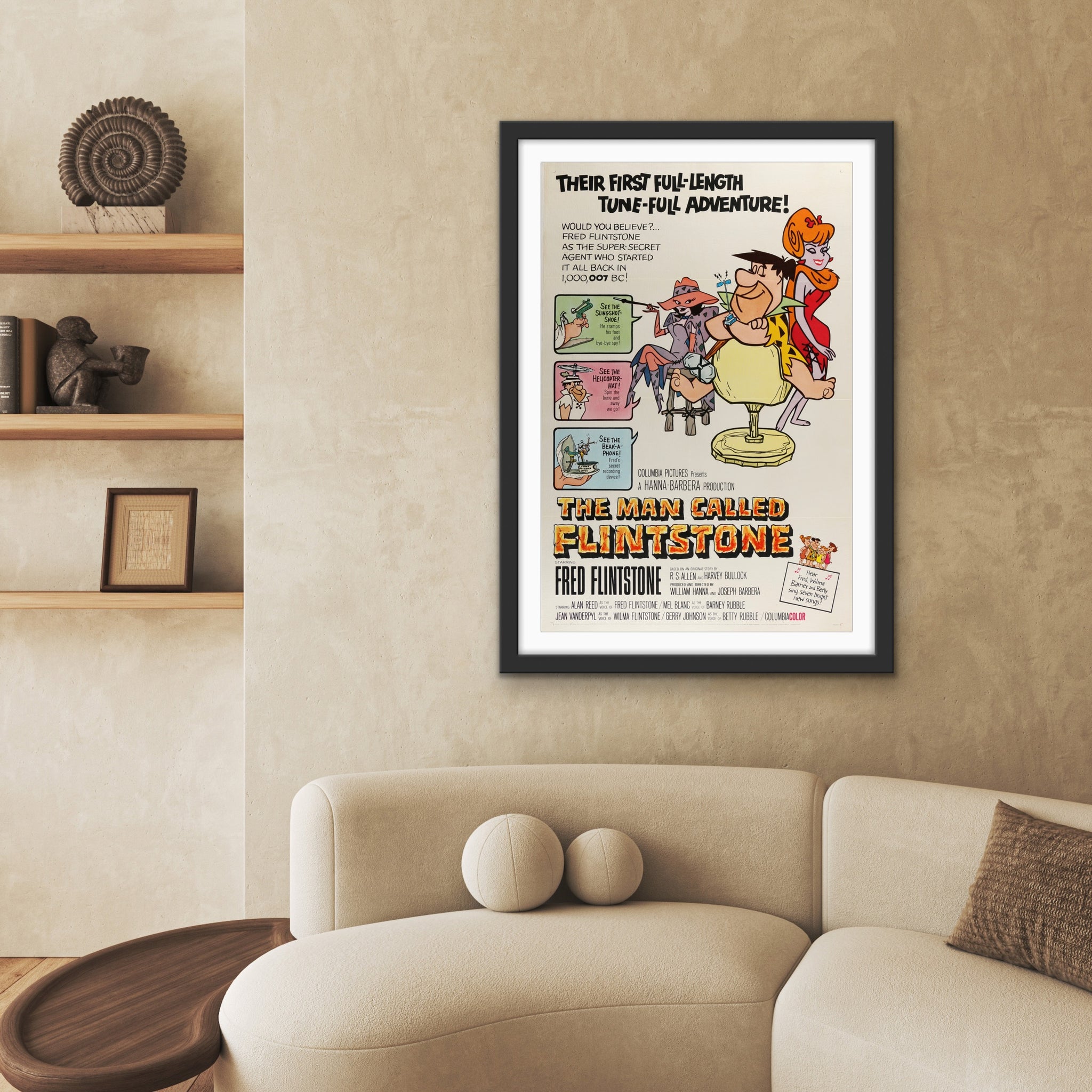 A rare and guaranteed original U.S. one sheet movie poster for William Hanna and Joseph Barbera's animated prehistoric spy spoof "The Man Called Flintstone", featuring the voice talents of Alan Reed, Mel Blanc, Jean Vanderpyl, Gerry Johnson and Janet Waldo.