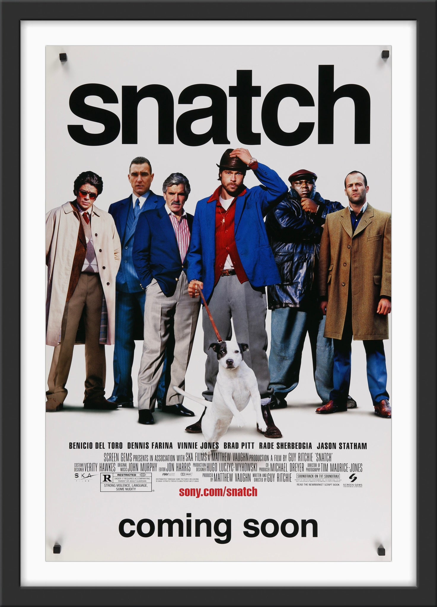 A guaranteed original advance one sheet movie poster from 2000 for Guy Ritchie's crime comedy "Snatch", starring Brad Pitt, Jason Statham, Benicio del Toro and ex-footballer Vinnie Jones.