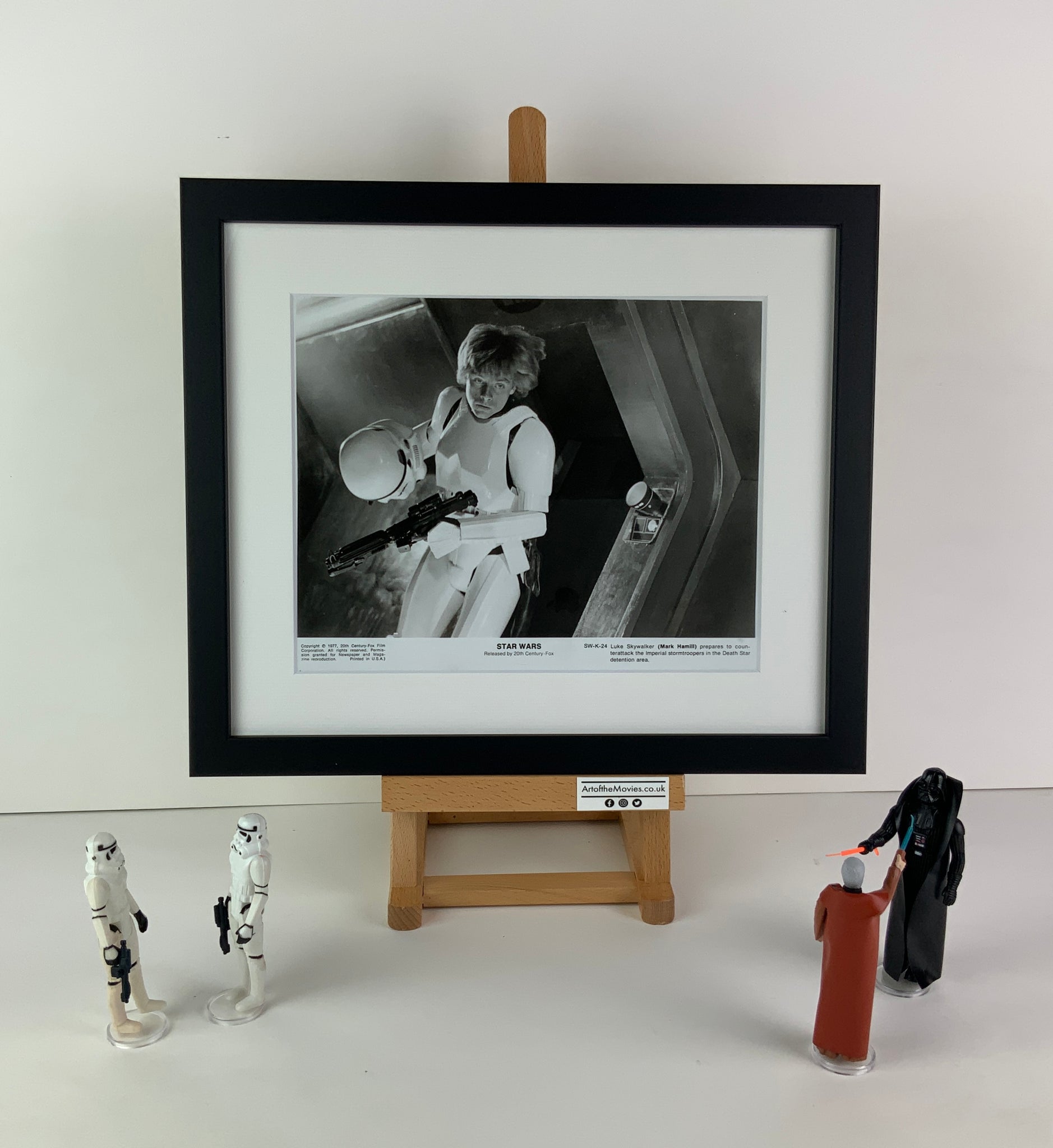 A guaranteed original and framed '8 x 10' movie still from 1977 for "Star Wars", now known as "Star Wars: Episode IV - A New Hope".