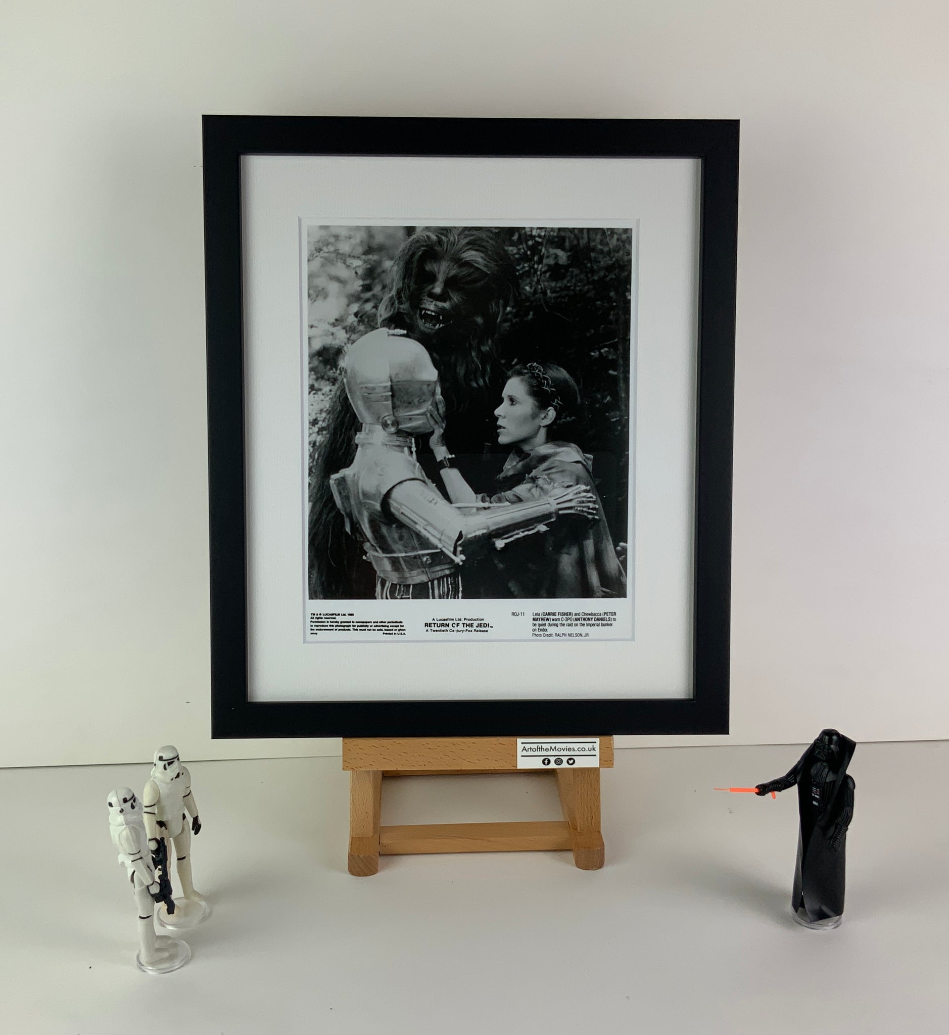 A guaranteed original and framed '8x10' movie still from 1983 for "Return of the Jedi", the third film of the original Star Wars trilogy.