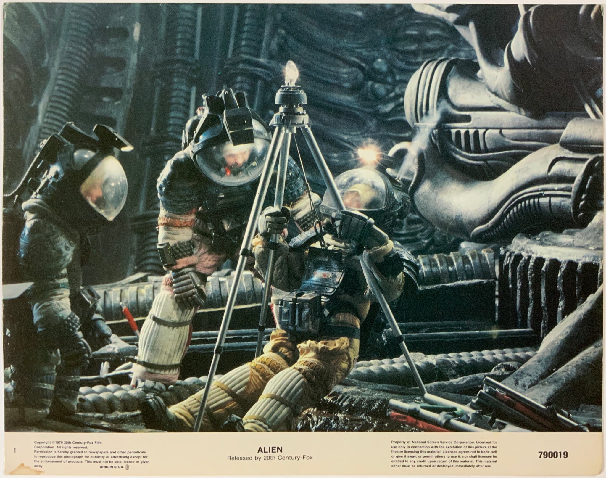 This superb and really atmospheric lobby card shows the crew of the Nostromo preparing to descend in to the alien ship. It would have been used in the foyer of a U.S. movie theatre at the time of the film's release.